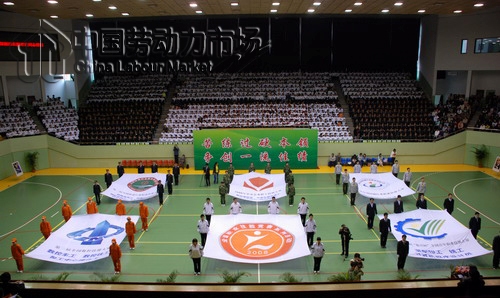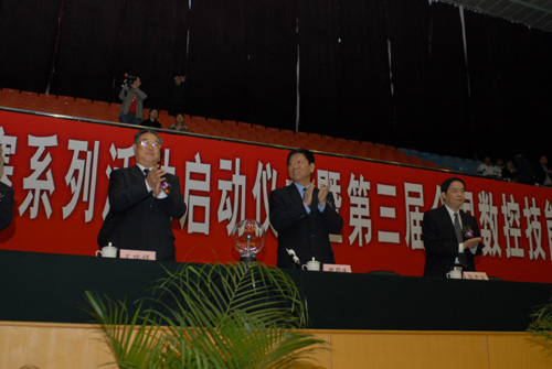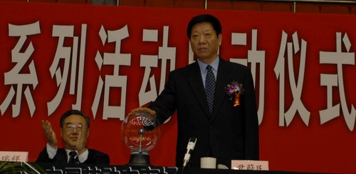 图3、人力资源和社会保障部部长尹蔚民宣布2008年全国职业技能竞赛系列活动正式启动