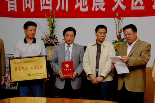 保定会馆总公司向灾区捐款20万