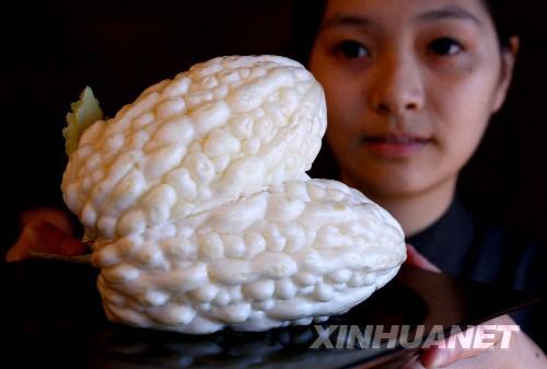 用苹果苦瓜为原料制作的类似清代藏品白玉锦荔枝的菜肴——“白玉锦荔枝”
