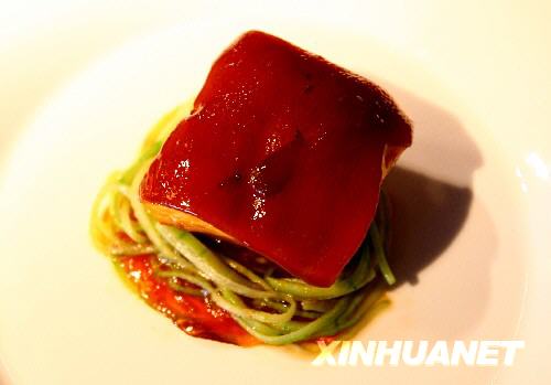 用蹄膀肉制作的外形为清代艺术珍品——玛瑙肉型石的菜肴“肉型石”