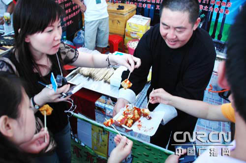 争相品尝小吃的群众