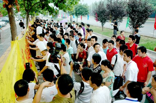 大赛期间的再一个亮点就是“迎奥运弘扬豫菜万人签名”大行动,弘扬豫菜万人签名曾先后亮相中国厨师节、河南省第二届豫菜品牌大赛等全国各类重大活动现场。在本次签名活动现场,奥运火炬手、中国第一位世界射击冠军巫兰英等纷纷在条幅上签名,表达了对豫菜的支持。