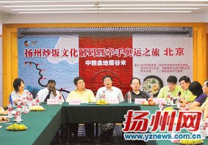 8月6日, “扬州炒饭文化解码暨牵手奥运之旅”首站来到首都北京,在长安街旁的山水宾馆内,正式启动“解码”行动。前驻阿尔巴尼亚大使范承祚,中国烹饪协会、奥组委食品管理部门相关人士出席了昨天的活动。中国烹协指出此次活动是中国烹饪界的一件大事,扬州炒饭是扬州的,更是中国的、世界的。