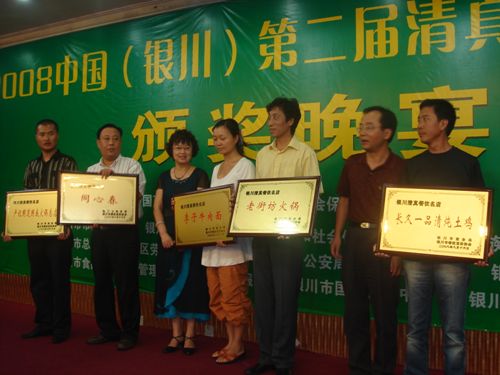 8月17日,由中国烹饪协会、银川市人民政府主办,银川市商务局、银川市餐饮烹饪协会承办的2008中国(银川)第二届清真美食节,历时三天在银川圆满落幕。中国烹饪协会清真烹饪专业委员会主任马云福出席美食节活动并在闭幕式颁奖晚宴上为获得清真名店、名小吃的企业和个人颁奖。