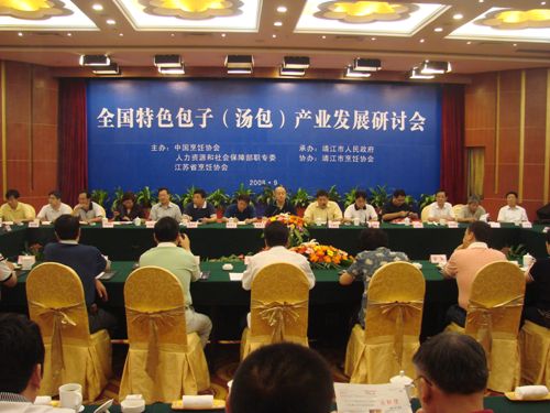为促进我国特色包子(汤包)产业的进一步发展,由中国烹饪协会、国家人力资源和社会保障部职业技能专家委员会中式面点专委会、江苏省烹饪协会共同主办,靖江市人民政府承办,靖江市烹饪协会协办的全国特色包子(汤包)产业发展研讨会,于9月17~18日在江苏省靖江市举行。这是继1999年“首届包子产业论坛”后的又一次全国性交流大会。来自全国餐饮界的学者、专家、管理人员、技术人员和北京、天津、上海、广东、浙江等省市的多家知名包子品牌企业负责人数十人参加了会议。中国烹饪协会副会长高炳义出席会议并讲话。