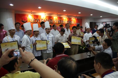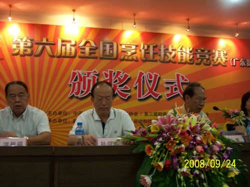 经过两天紧张而激烈的烹饪技艺展示和交流,第六届全国烹饪技能竞赛广东赛区比赛圆满结束。9月24日 ,在顺德梁銶锯职业中学的礼堂举行了隆重的颁奖典礼。广东赛区裁判长、中国烹饪协会副会长孙应武,中国烹饪协会副会长温祈福及副秘书长乔杰,广东省烹饪协会副会长冯冠中,顺德旅游局局长劳志和等出席典礼并为获奖选手颁奖。