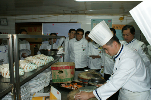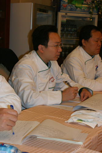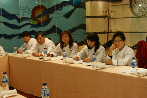 在对具体评判工作有了全面的认识后,裁判员们来到酒店后厨,按照大赛现场评判和作品评判要求进行现场模拟评判,随后卢永良裁判长对打分情况做了点评,指出评判工作中需要特别注意的事项并对各个项目的裁判员进行分组。各项目评判小组对所负责的评判内容进行了全面细致的讨论,为即将进行的评判工作做好了准备。