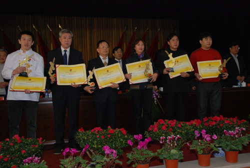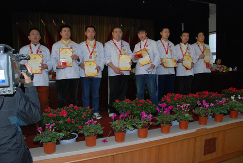 12月4日上午,第六届全国烹饪技能竞赛辽宁赛区的颁奖仪式在沈阳市金华园宾馆会议大厅隆重举行,辽宁省副省长及人大政协有关领导出席颁奖大会。143位个人赛选手和20个代表队的选手两天来经过热菜、面点、冷拼、食雕以及清真和餐厅服务等六个项目的比赛,共产生了32块个人金牌和6个团体金奖。