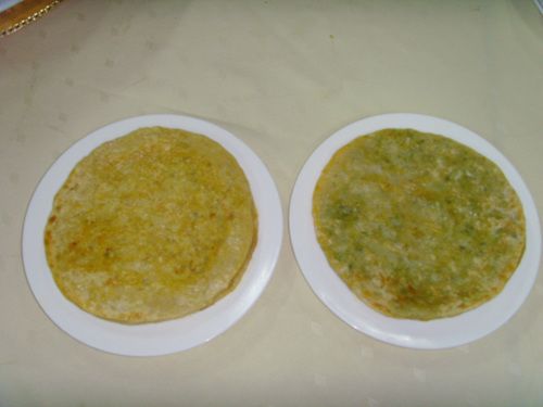 烙制好的馅饼色泽金黄、而且薄得见馅,看上去非常诱人
