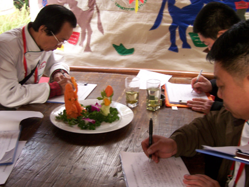 按照赛事要求,各位裁判员进行了现场操作、热菜作品、食雕作品和面点作品的模拟评判。演练结束后,高炳义裁判长对评判过程进行了系统点评,并针对模拟评判中反映出的问题进行讲解分析,指出认真学习和运用竞赛评判规则和评判标准的重要性:不仅能提高裁判员自身的评判水平,完善业务能力,而且也是对参赛选手负责、对大赛组织工作支持的最好体现。