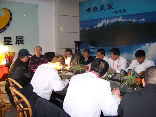 高炳义裁判长在给裁判员进行培训讲解