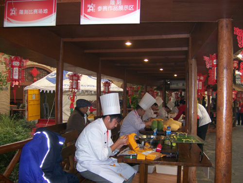雕刻选手正全力创作作品