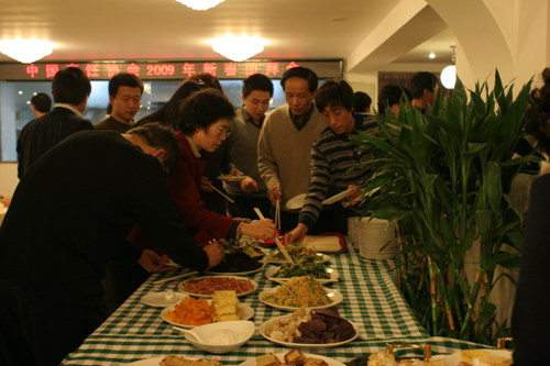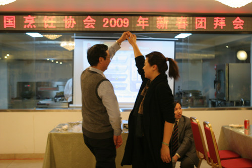 在团拜会上,协会对2008年度做出突出贡献的部门和个人进行了表彰。杨柳常务副会长和部分员工还走入就业培训见习基地的厨房一展厨艺,为大家烹制了美味可口的菜肴,部分员工代表还表演了精彩的文艺节目,大家欢声笑语中度过了一个难忘的夜晚。