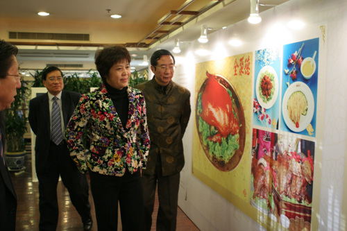 周部长一行先后视察了顺峰酒楼农展馆店展区和直隶会馆北京大学店展区。在展区现场,周部长详细的询问了展演的项目和流程,对展区的环境布置给与了充分的肯定。考察期间,周部长还饶有兴致地参观了部分展品,听取了现场工作人员的讲解和演示,并表示中国饮食文化历史悠久、博大精深,这次展演活动对于保护和弘扬中国传统烹饪技艺意义深远而重大。周部长希望中国烹饪协会继续更加科学、深入、扎实地开展中国传统烹饪技艺的挖掘、整理和保护工作,使餐饮业在挖掘保护、总结弘扬,发展利用等方面谱写出更加喜人的篇章,为促进经济发展、社会文明进步,社会和谐做出应有的贡献。
