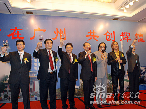 新春祝酒。左起:谢伟杰(广州西餐行业协会会长)、秦鑑洪(广州地区饮食行业协会会长)、彭树挺(广州西餐行业协会永久会长、白天鹅宾馆副总经理)、陈基(广州地区烹饪协会会长)、庄臣(资深美食家)、区又生(广州市饮食行业商会会长)、黄振华(广州市技师协会餐饮分会会长)。