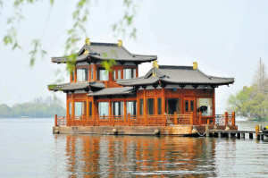 3月24日,一艘古色古香的餐饮船停在杭州西湖上。近日,一艘具有江南民居风格的豪华餐饮船出现在杭州西湖水域,该船计划于5月份投入使用。 文章来源:新华社