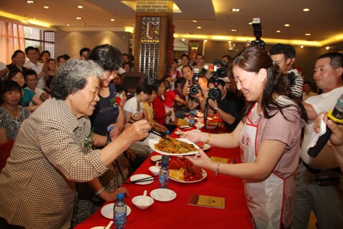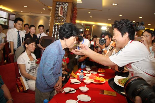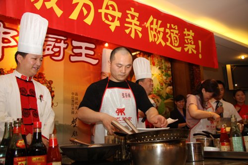 在活动即将结束的时候,中国烹饪大师、河南阿五美食有限公司董事长樊胜武的母亲也来到现场,樊胜武说,自己做了20多年厨师,却很少给自己的母亲做饭,在这里为表达对母亲的敬意,现场也亲自为母亲做了一道精美的菜肴,现场掌声顿时响成一片,活动达到高潮。