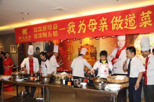 据此次活动的主办方中国烹饪大师、河南阿五美食有限公司董事长樊胜武介绍说,在母亲节前夕阿五美食联合几家单位共同举办“我为母亲做道菜”的活动,就是要让全社会都关注自己的母亲,传承中华民族的光荣传统。这次参加人员不仅有抗争救灾英模、五一劳模等成年人,还有学生,就是为了让这样的好传统传递给下一代。不仅现场让大师们教做菜,而且还评选出优胜者,发代金券及礼品,还为参加人员准备了丰盛的晚宴,让一家人好好过一个母亲节。通过这样的活动,希望在全社会传递爱的行动,让更多人关注老人。