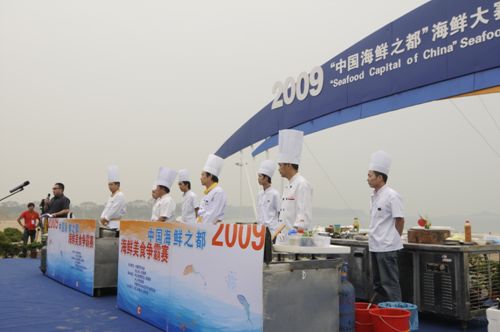 6月3日至4日,由中国烹饪协会、浙江省舟山市人民政府主办的“中国海鲜之都”海鲜大餐争霸赛、“中国海鲜之都”海鲜美食论坛在舟山市普陀区朱家尖举行,成为“2009舟山群岛?中国海洋文化节”的亮点活动之一。这次活动进一步推动了我国海鲜美食产业的发展与创新,同时提升舟山“中国海鲜之都”影响力和美誉度。来自全国10余个省市的餐饮企业、行业组织的代表参加了此次活动。据悉,八大菜系名厨同台竞技海鲜美食首属首次。舟山市政府副市长王忠志,中国烹饪协会副会长、名厨委主任高炳义,舟山市旅游局局长干松章,普陀区人民政府副区长方维等出席了开幕活动。