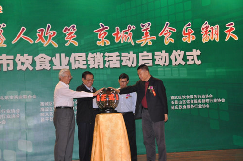 9月25日,“2009北京购物季”全市饮食业促销活动在北京全聚德和平门店四楼金色大厅正式启动。这次活动是北京市商务委员会倡导,由北京市饮食行业协会主办,旨在全市范围内大力开展饮食业促销工作,拉动内需,为消费者营造一个丰富、便利、实惠放心的饮食消费环境。中国烹饪协会苏秋成会长出席了启动仪式。
