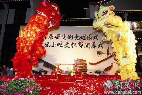 小食得大道,陋巷焕新颜。26日晚,武汉市户部巷风情街在传统的舞狮庆典中举行开街亮灯仪式,同时启动“汉味小吃文化节”。