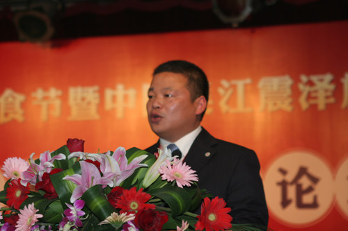 震泽镇党委书记张炳高向大家介绍震泽镇农家菜的发展历程