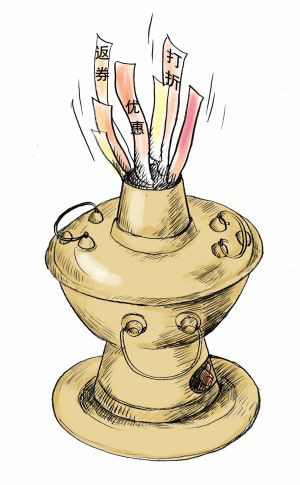 入冬以来,东来顺的火锅就开始一路畅销,同比增长约10%。今年东来顺餐厅在新年期间推出礼盒加新年年夜饭的“订餐送礼”活动,淮扬府餐厅新年期间也推出了“欢庆圣诞元旦品味淮扬盛宴”主题活动,麻辣诱惑在此次新年活动期间推出了“刷卡打折”的促销活动,仿膳饭庄打出的是“节日优惠套餐”牌。