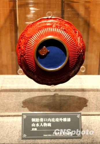 镇馆之宝:国家二级文物乾隆铜胎葵口内珐琅外雕漆山水人物碗
