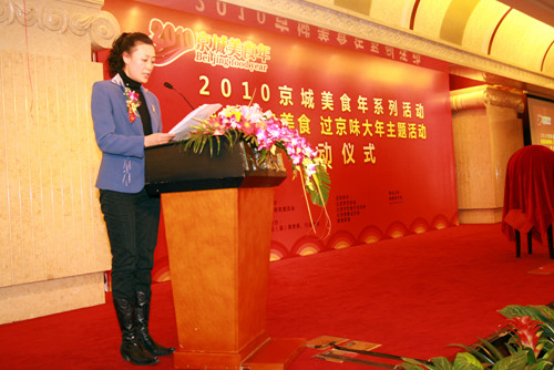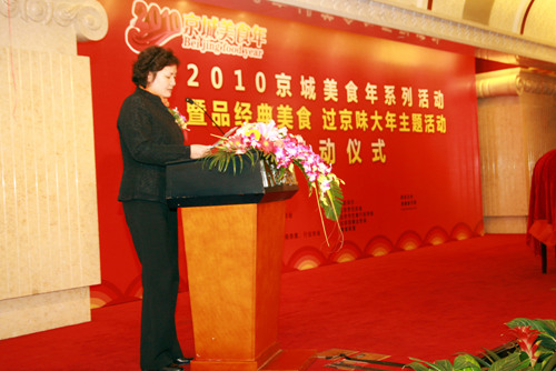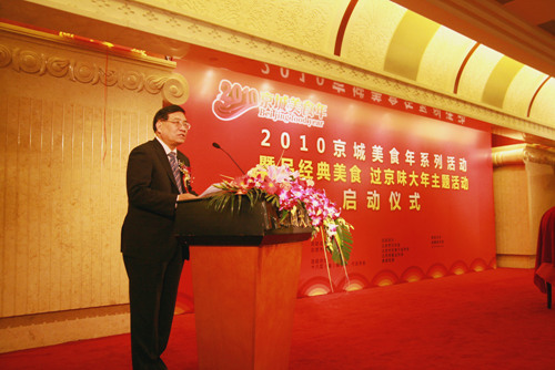 2月1日,以“建设世界城市,打造美食之都”为主题的“2010京城美食年”系列活动正式启动。中国烹饪协会副秘书长李亚光、北京市商务委员会副主任李薇薇、北京烹饪协会会长姜俊贤与来自北京市180余家知名餐饮企业代表出席了启动仪式。