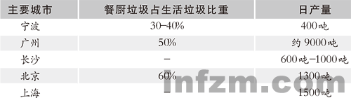 而对上海近三万家普通餐饮企业和150家左右星级饭店的调查表明,上海市平均每天产生的餐厨垃圾约1500吨。苏州市千家大型饭店餐厅及一千多家企事业单位食堂,每天餐厨垃圾产生量也在400吨以上。杭州市仅饭店、餐厅和酒楼产生的餐厨垃圾每天就超过300吨。