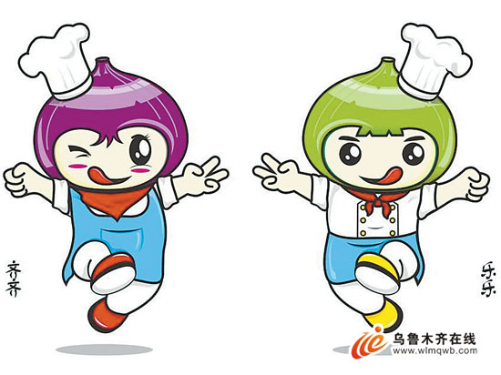 吉祥物是两个卡通形象,代表一男一女,取名“齐齐”和“乐乐”,意为“齐享欢乐”。据设计师冀玙介绍,吉祥物的创作灵感来自——新疆饮食的特色之一“皮牙子”(洋葱)。冀玙说,新疆的风味饮食全国独树一帜,而“皮牙子”更是营养丰富应用广泛。“皮牙子”作为吉祥物的创作原型,更加贴合新疆的饮食文化。