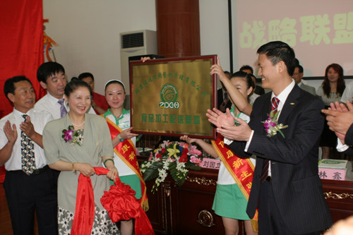 振达绿厨公司董事长张学锋、鑫记伟业集团董事长林鑫代表双方签署战略合作协议并为基地的落成揭幕中国烹饪协会副会长兼秘书长冯恩援出席仪式并发表了热情洋溢的讲话