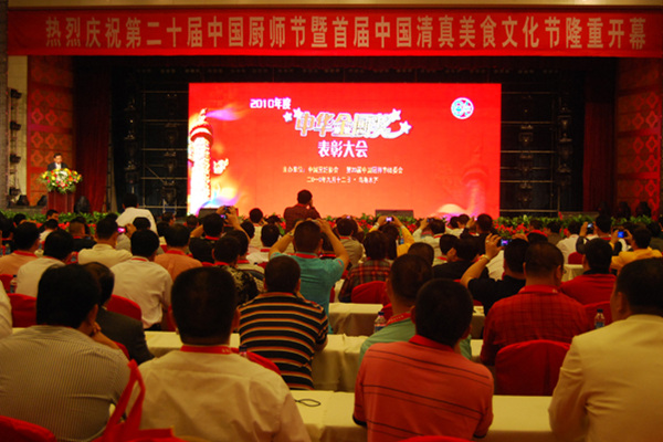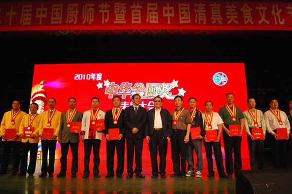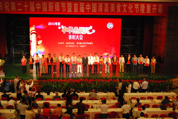 9月12日,2010年度中华金厨奖表彰大会在乌鲁木齐市环球会展中心隆重举行。中国烹饪协会会长苏秋成,乌鲁木齐市副市长马雪峰,昆明市副市长阮凤斌,中国烹饪协会特邀顾问沈思明、马凤岐等嘉宾以及来自全国31个省、市、自治区的餐饮企业和厨师代表300余人出席了颁奖典礼,共同见证了2010年度餐饮行业楷模的诞生。