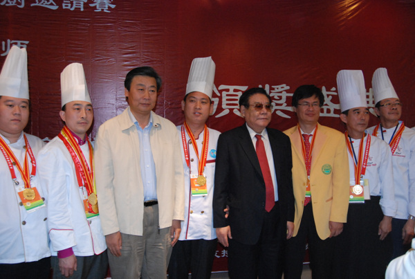 高炳义副会长与林振国烹饪大师为选手颁奖