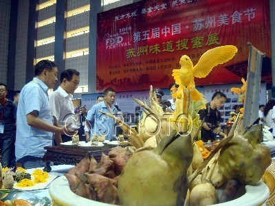 9月20日,由中国烹饪协会、中国食品工业协会、苏州市政府等共同主办的2010第五届中国·苏州美食节在苏州相城区体育馆开幕。