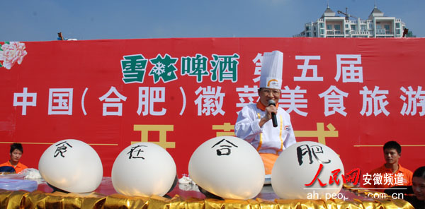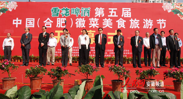 以"天天美食,人人健康"为主题的第五届中国(合肥)徽菜美食旅游节于9月30日上午在合肥市徽园世纪广场开幕。中国烹饪协会会长苏秋成,安徽省委常委、合肥市委书记孙金龙,安徽省人民政府副省长花建慧、副秘书长韩军等出席开幕式