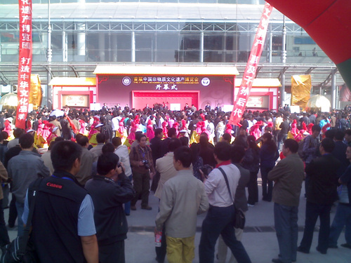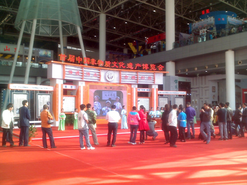 由国家文化部、山东省人民政府联合主办的首届中国非物质文化遗产博览会,10月15日上午在山东省济南市舜耕国际会展中心广场隆重开幕。来自全国31个省、市、自治区和新疆生产建设兵团的622项国家级与省市级非物质文化遗产保护项目参展,台、港、澳地区的剪纸等参加了展览。包括西安饭庄的陕西风味小吃、老孙家的牛羊肉泡馍、江苏沛县的鼋汁狗肉、湖南的麻香糕、贵州的鸡辣子等多项饮食类“非遗”项目也在博览会上精彩亮相。