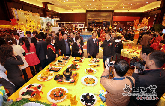 在开幕式上,全省名菜名宴名点名小吃展示认定会随即掀开面纱,主要分两个展厅,雷迪森大酒店一楼展厅主要为中餐(汉餐)菜品、宴席、面点、小吃展区,二楼则是具有民族特色的清真菜品展示区。来自全省的12个市州(不包括甘南、陇南)代表队纷纷亮出了各自的绝活,天水代表队的“秦州八景宴”、庆阳代表队的“农耕文化传承宴”、老字号景扬楼的“淮扬特色菜”等独具特色,色泽与形态皆宜,口味与文化并重,参展的菜品档次普遍较高,代表了我省近年来餐饮界最具特色的经典菜品和一系列新近创新研制的菜品。