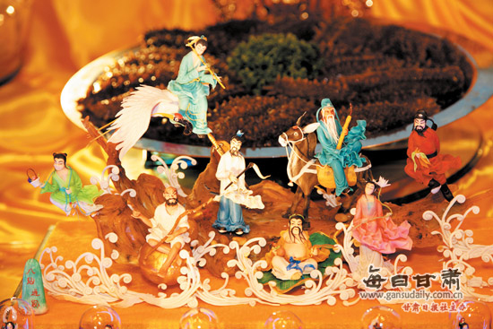 麦积烟雨、石门夜月、仙人送灯、诸葛军垒、南山古柏、玉泉仙洞、伏羲卦台、净土松涛,作为伏羲文化发源地的天水市代表天水迎宾馆,在18日的认定会上,独具匠心将著名的“天水八景”端上了餐桌,“绘制”了一幅“秦州八景宴”,吸引了众多人士驻足欣赏,流连忘返,真正可谓是“秀色可餐”,一块块笋片、萝卜、肉片等再普通不过的食材,在厨师的雕琢下,变得“神乎其神”。据参展方介绍,这道“八景宴”推出来才3个多月,价格初步定为1880元。现场的一位市民很是“发愁”:这菜做得这么精致美丽,怎么让人舍得吃啊!