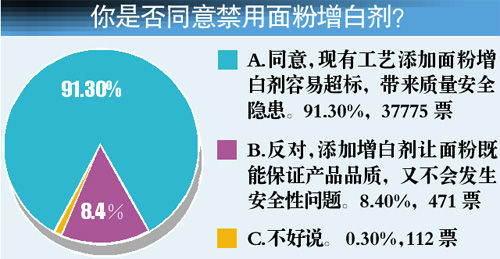 12月15日,卫生部监督局网站对是否禁止使用面粉增白剂——过氧化苯甲酰和过氧化钙公开征求意见。同时称,拟从明年12月起禁用面粉增白剂。消息一公布,引起社会各方关注。