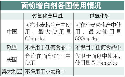 在《食品安全国家标准食品添加剂使用标准》(征求意见稿)中,“面粉增白剂”依然被列入面粉处理剂。