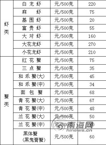 海鲜批发均价公布 53种海鲜仅有7种价格过百元