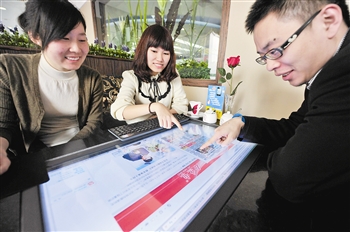 别开生面的网络餐厅日前落户天津市,每张桌面都有一个可触摸电脑屏幕,顾客可以边用餐边上网,深受年轻人的欢迎。