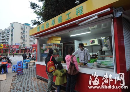 早餐工程车改亭,就是力求早餐工程网点固定化并改变其路边摊形象,早餐品种将更丰富,营业时间还在酝酿延长。