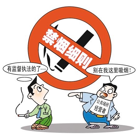 室内公共场所禁止吸烟,公共场所经营者应当设置醒目的禁止吸烟警语和标志;室外公共场所设置的吸烟区不得位于行人必经的通道上;公共场所不得设置自动售烟机;公共场所经营者应配备专(兼)职人员对吸烟者进行劝阻。