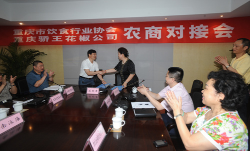 重庆市饮食协会会长刘英也表示,对于农户万元增收工程,市委书记薄熙来特别要求抓好三大环节,一是提供优良的种苗,二是提供技术,三是衔接好市场。目的是要让农民既愿干又会干,还要尽快富裕起来。这次饮食行业协会组织50多家会员企业直接到花椒种植基地集中采购,就是为了衔接花椒市场,解决农产品供需信息不畅问题,让花椒能够卖得出、卖得远、卖得久、卖个好价钱,带动椒农持续增收致富。并在现场与江津骄王花椒公司签定了战略合作协议,今后,重庆市饮食行业协会由重庆骄王花椒公司常年为会员企业提供“骄王”鲜花椒、干花椒、花椒油等系列产品,会员企业可以批量采购,使用时提货,用多少提多少,存放期间由重庆骄王花椒股份有限公司运用现代生物杀酶和真空冷冻保鲜技术(不用添加剂)进行保鲜。且价格比市场价格低5%-10%。