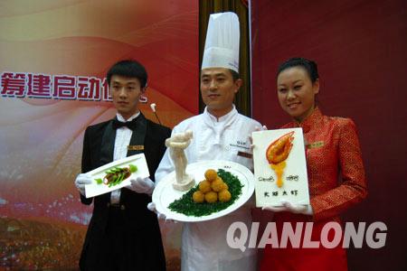 厨师与服务员展示奥运菜品