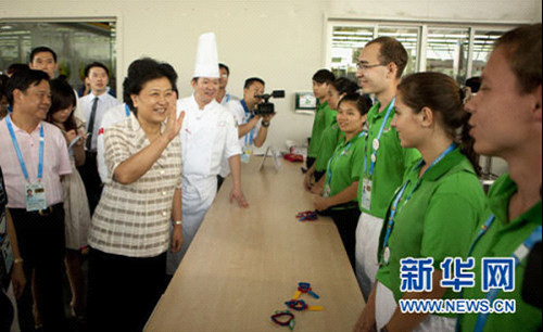 刘延东考察大运村 关心运动员餐厅供餐情况