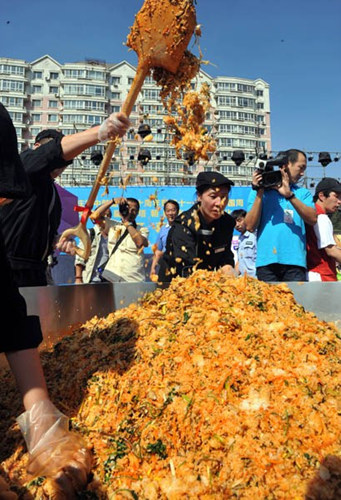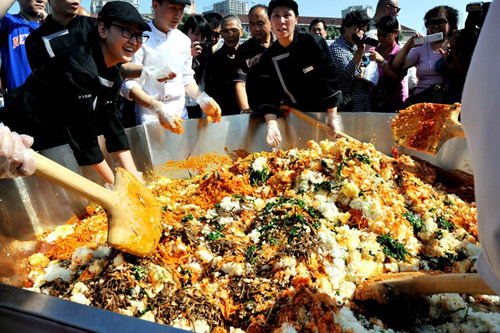 8月24日,辽宁沈阳,作为中国沈阳西塔首届朝鲜族美食文化节盛大开幕,开幕仪式上的最大亮点就是曾为韩国三届总统提供服务的厨师金奎亨出现,他为沈阳市民做了一顿可控2000人食用的“巨无霸”拌饭。
