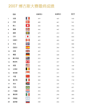 2007博古斯大赛最终成绩